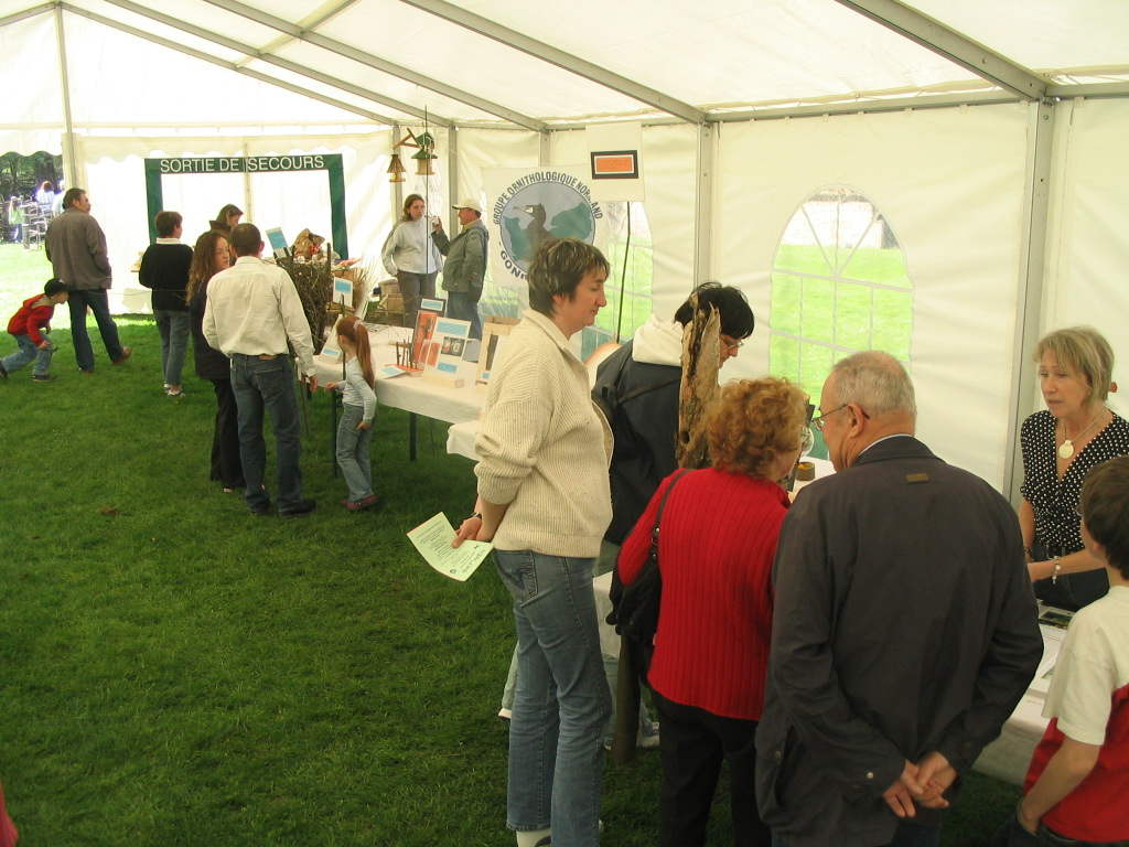 Stand GONm, fête des oeufs, château de Crévecoeur-en-Auge/14 (8 avril 2007) A droite, Jocelyne Dailloux à qui revient la tâche la plus ingrate: essayer de "vendre" nos "produits"...