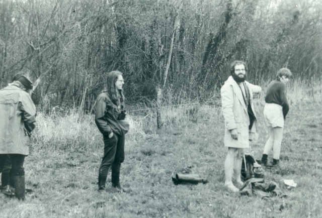 Photo J. Collette Stage Le Marais Vernier/27 du 1 au 3 avril 1972 Une illustration des plaisirs du stage en zone humide: échanges de pantalons plus ou moins secs...