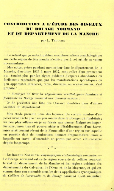 Première page de l'article de Lucius TROUCHE publié dans la revue Alauda en 3 parties: (1956) 24: 295-302, (1957) 25: 56-67 et 133-142.